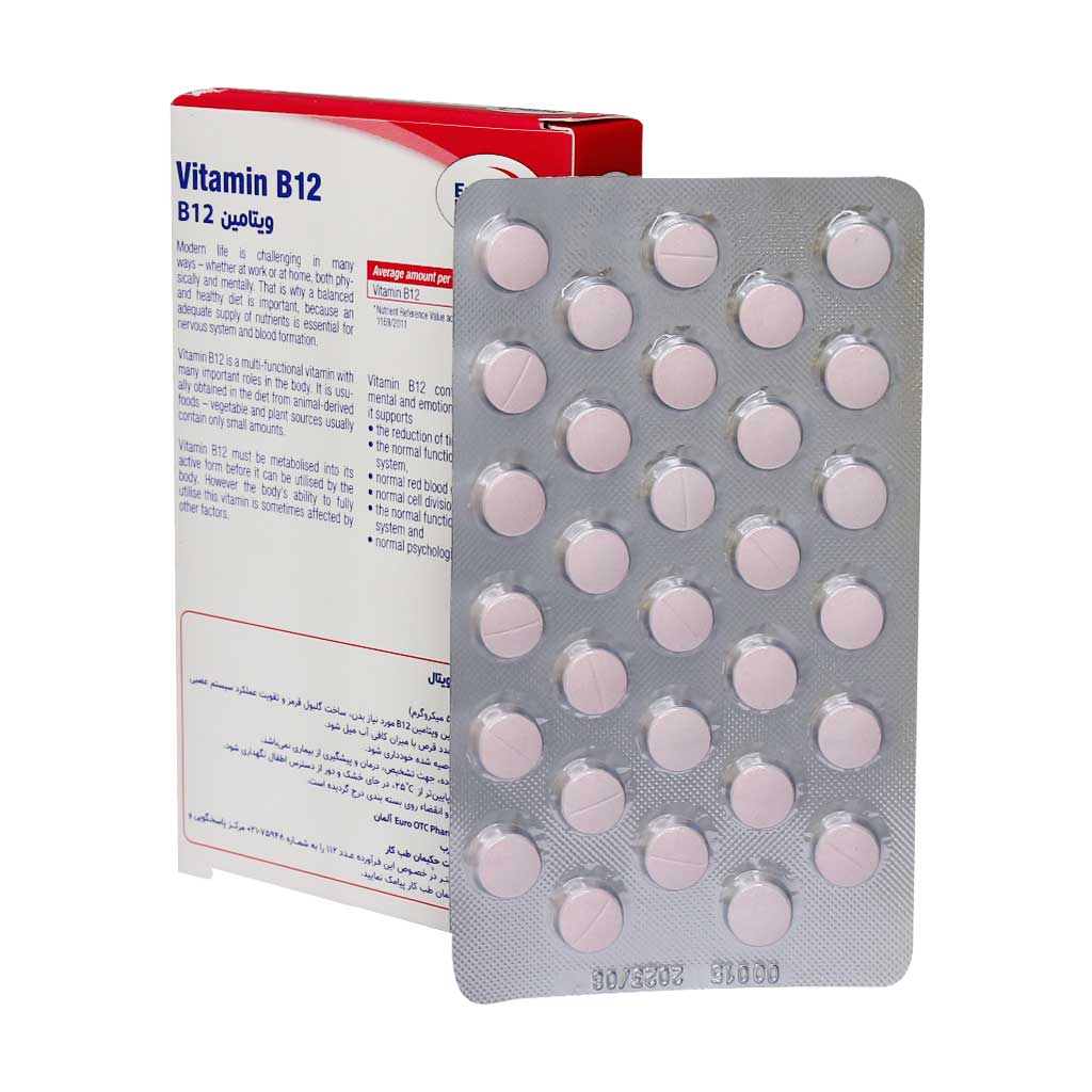 روزانه یک عدد قرص ویتامین B۱۲ یورو ویتال همراه آب و غذا میل شود.