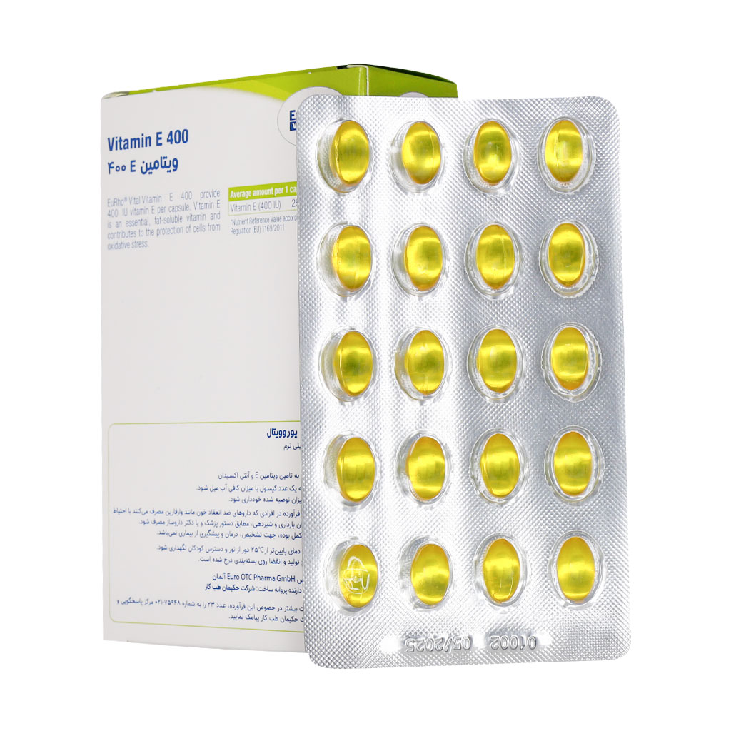 کپسول ژلاتینی ویتامین E ۴۰۰ واحد یوروویتال خاصیت آنتی اکسیدانی داشته و ضمن تامین ویتامین E مورد نیاز بدن، اثرات مخرب رادیکالهای آزاد را از بین میبرد.